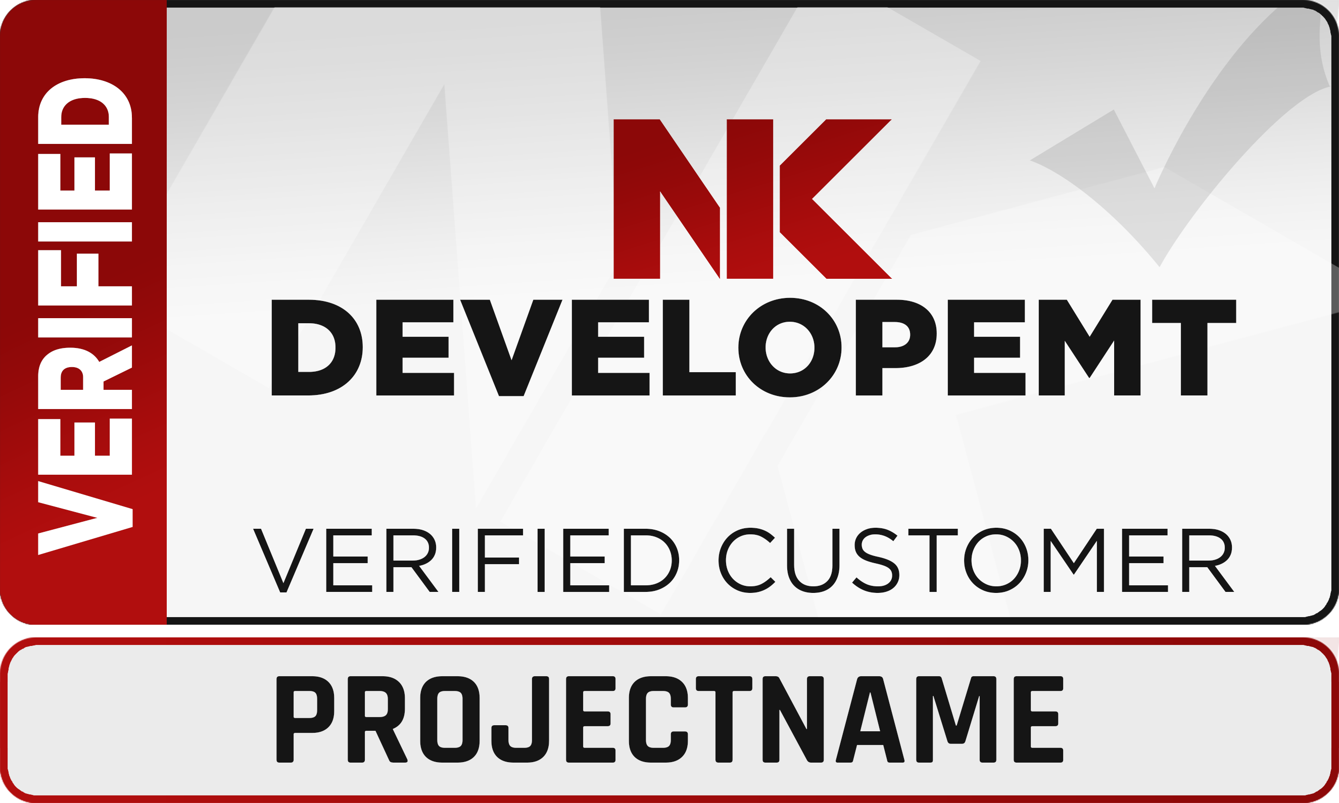 Verified Customer bekommen von uns das folgende Badge mit ihrem Projektnamen und können uns mit diesem verlinken.